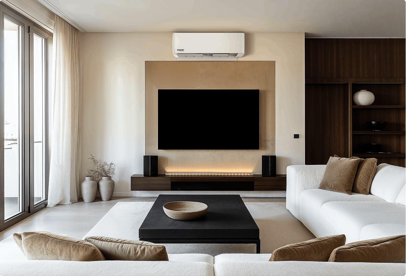 Los equipos de aire acondicionado Kosner ofrecen el máximo confort con el mínimo consumo, combinando tecnología de última generación, un diseño elegante y soluciones eficientes y silenciosas que se integran a la perfección en cualquier hogar.