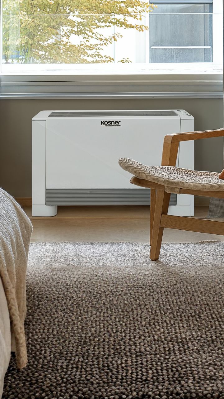 - Fancoil DC Suelo-Techo KFCI-SLIM es un equipo de climatización compacto y versátil, diseñado para ofrecer eficiencia, confort y máxima integración en espacios reducidos. Su profundidad ultraslim de solo 130 mm permite instalación vertical en suelos, paredes o techos, adaptándose a las características del espacio sin comprometer el rendimiento.