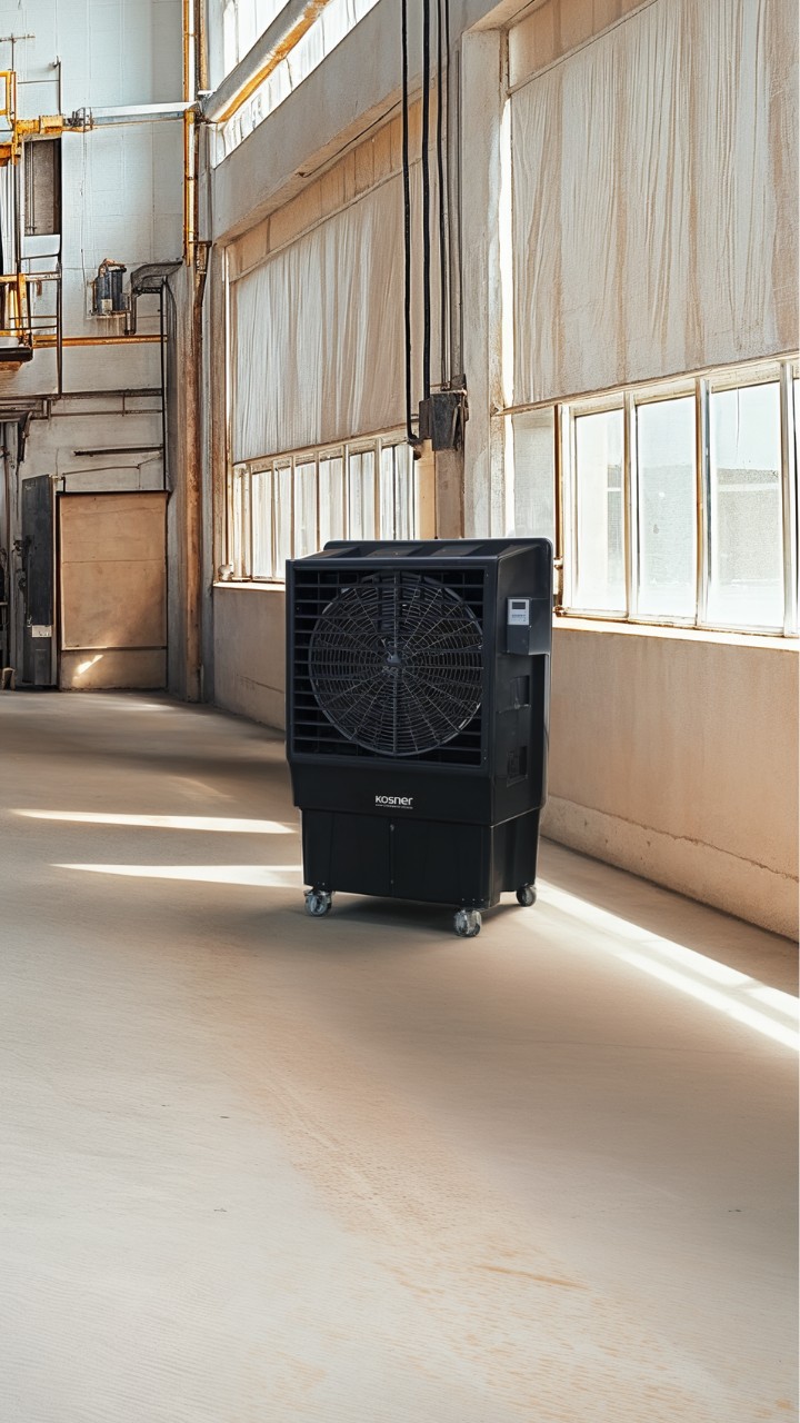 Climatizador evaporativo industrial de gran rendimiento, con alta capacidad de caudal de aire y amplia cobertura, diseñado para quienes necesitan enfriar ambientes amplios de forma económica, eficiente y respetuosa con el medio ambiente.